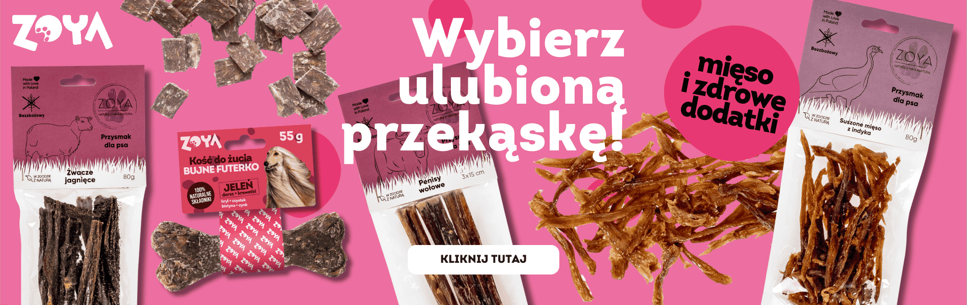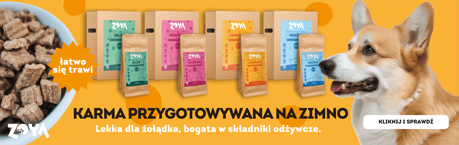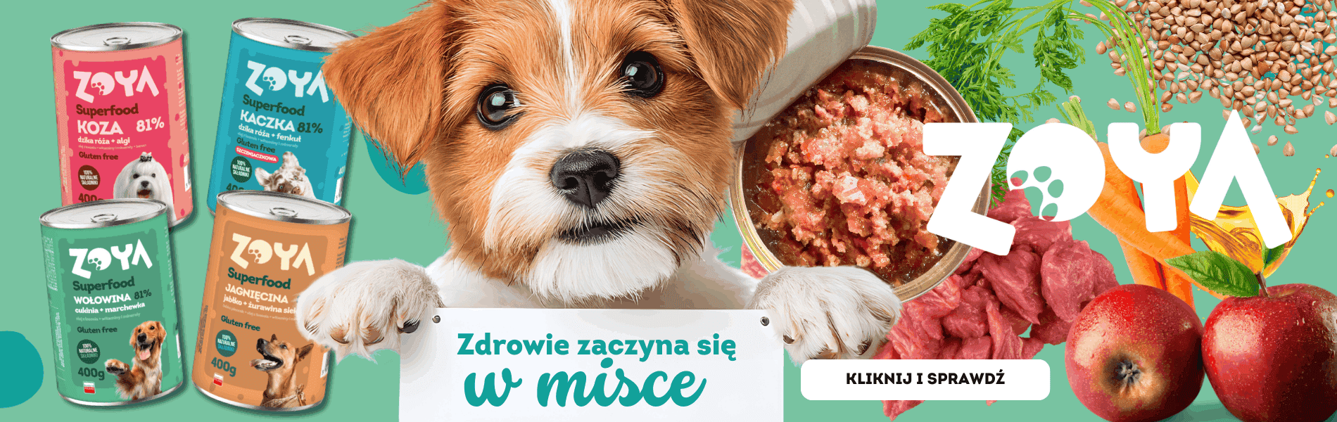 ZOYA – to imię jednego z naszych psiaków – to czarna, duża pudelka, która od zawsze miała bardzo wymagające podniebienie. Długo szukaliśmy najlepszej drogi żywieniowej. Spotykaliśmy się z psimi dietetykami oraz technologami i udało nam się stworzyć markę z produktami o doskonałym składzie z optymalną zawartością mięsa, warzyw, owoców i witamin, jednocześnie wyróżniających się wyjątkowym smakiem i aromatem wzbogaconym jedynie świeżymi ziołami. Do produkcji karm i przysmaków stosujemy najwyższej jakości mięsa, które w większości pozyskujemy od polskich dostawców. Jako źródło węglowodanów stosujemy ziemniaki, bataty, marchewkę, buraki, dynię. Dodajemy również owoce, nasiona i zioła, co wspiera układ trawienny i dodaje smakowitości.