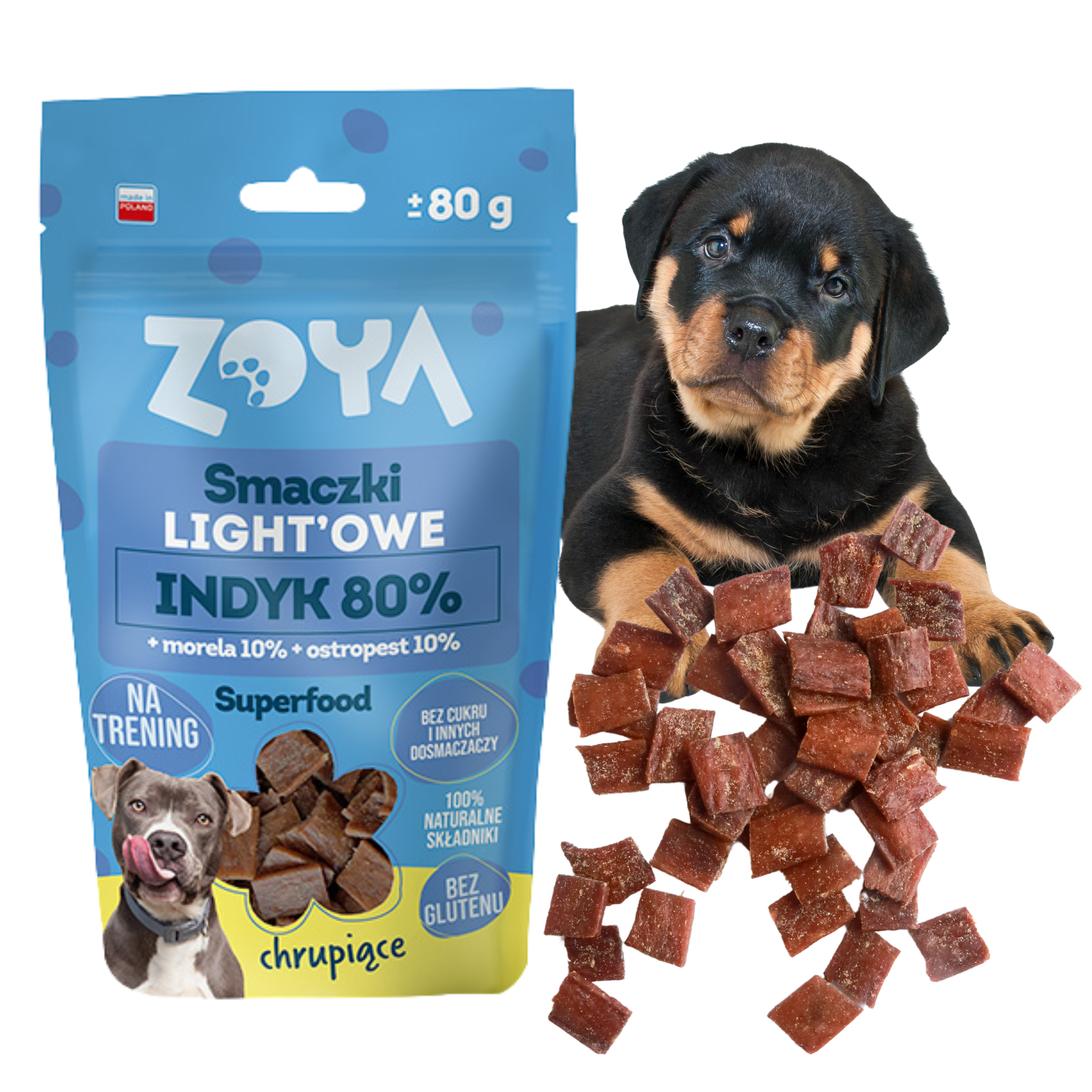 Przysmak treningowy dla psa ZOYA – Smaczki Smaczki LIGHT’OWE indyk 80g – zdrowe, monoproteinowe, naturalne