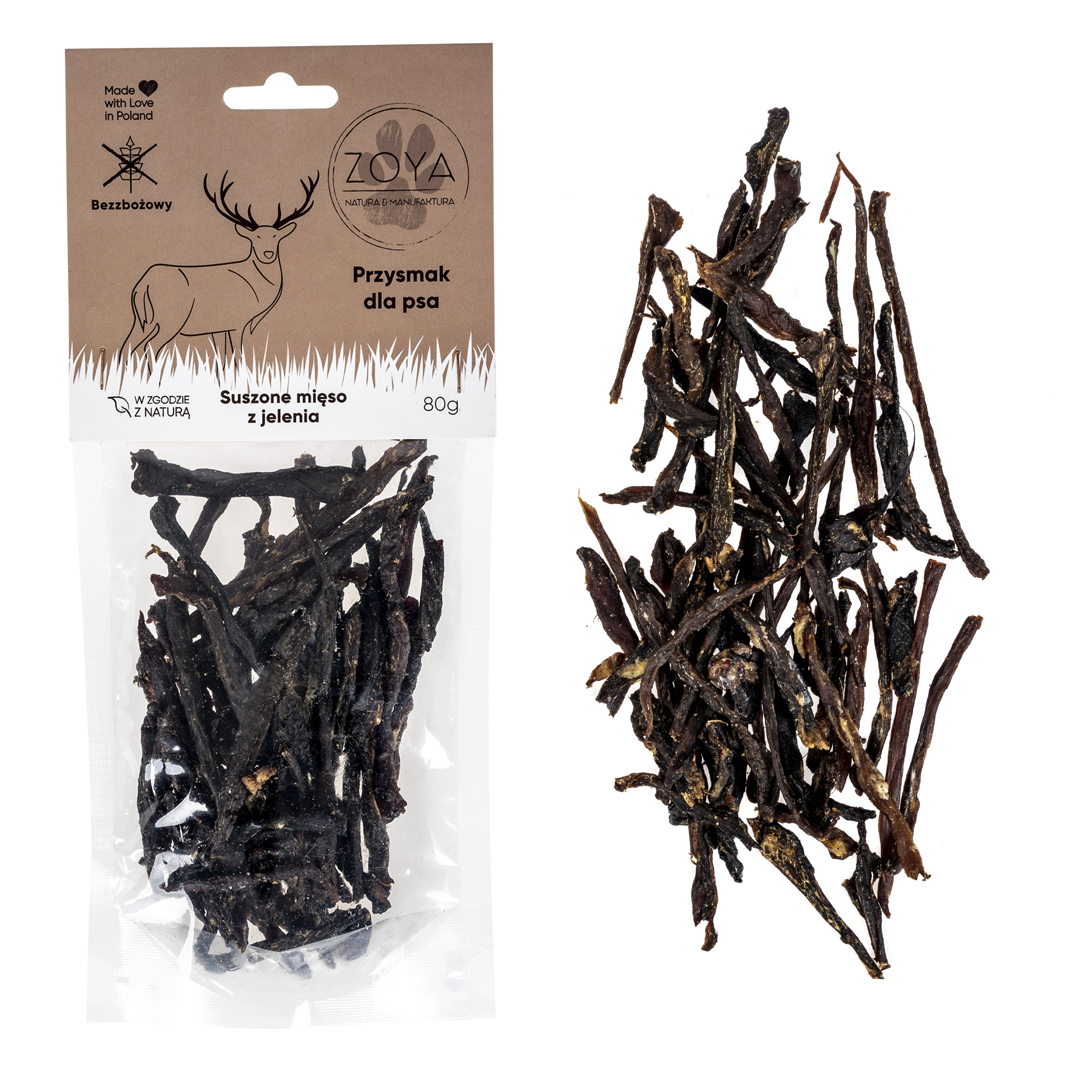 Suszony przysmak dla psa ZOYA – MIĘSO Z JELENIA 80g – 100% naturalny